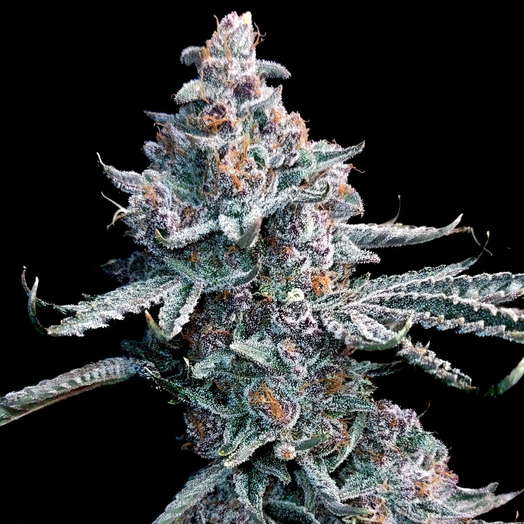 A super stony Indica dominant hybrid was created with live rosin hash makers needs in mind. Sturdy plants with dense resin field covered, purple flaked buds. She’s a real star for cut flower or fresh frozen hash alike. After years of selecting and backcrossing the most beautiful plants with the driest, sandiest and most bulbous Trichomes, we are confident she will do well for Traditional and new school hash makers alike. Reported average Fresh frozen yields above 3%.